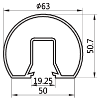 Hf Rd Glz Tp Rail:63x50x1.8mm