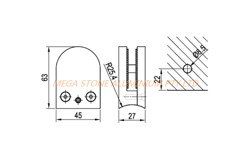 satin rd ss316 for 8-12mm glass, to suit round 50.8mm tube