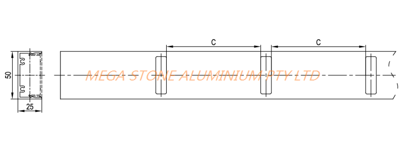 • Stock Code:M7-2-50252-sp1038-50mm  Description:50x25x2.0 channel punched holes  Length:6M  Gap(C):50mm  Packing:8Ln/Pk  Unit:(Ln)  9999
